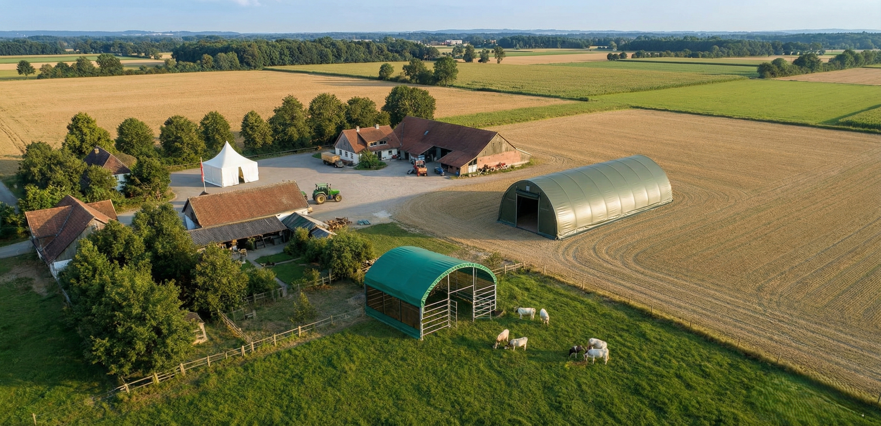 Fazit: Wer seinen Bauernhof heute zukunftssicher aufstellt, setzt auf skalierbare Lösungen. Weidezelte und Rundbogenhallen bieten Ihnen die Freiheit, Ihren Betrieb genau dann zu vergrößern, wenn der Markt es verlangt – ohne jahrelange Kreditbindung für Festbauten.